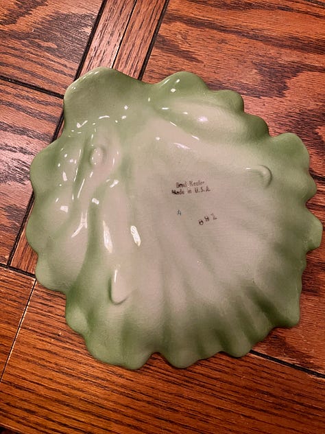 While at the time of our exchange I did not own either the lobster plate or the divided dish, I do now. The Smithsonian entries don’t yet have pictures, but based on the matching numbers, I assume they are identical to the ones below.
