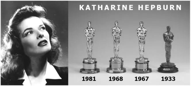 Looking at our photo and comparing it against a published timeline of the Oscar statuettes over the years, I notice that it’s identical to one that Katharine Hepburn received in 1933. Identical. So where was Brad in 1933? He would have been twenty years old. According to voting records, Brad had two years of college, which would make the timing of his first job about right.