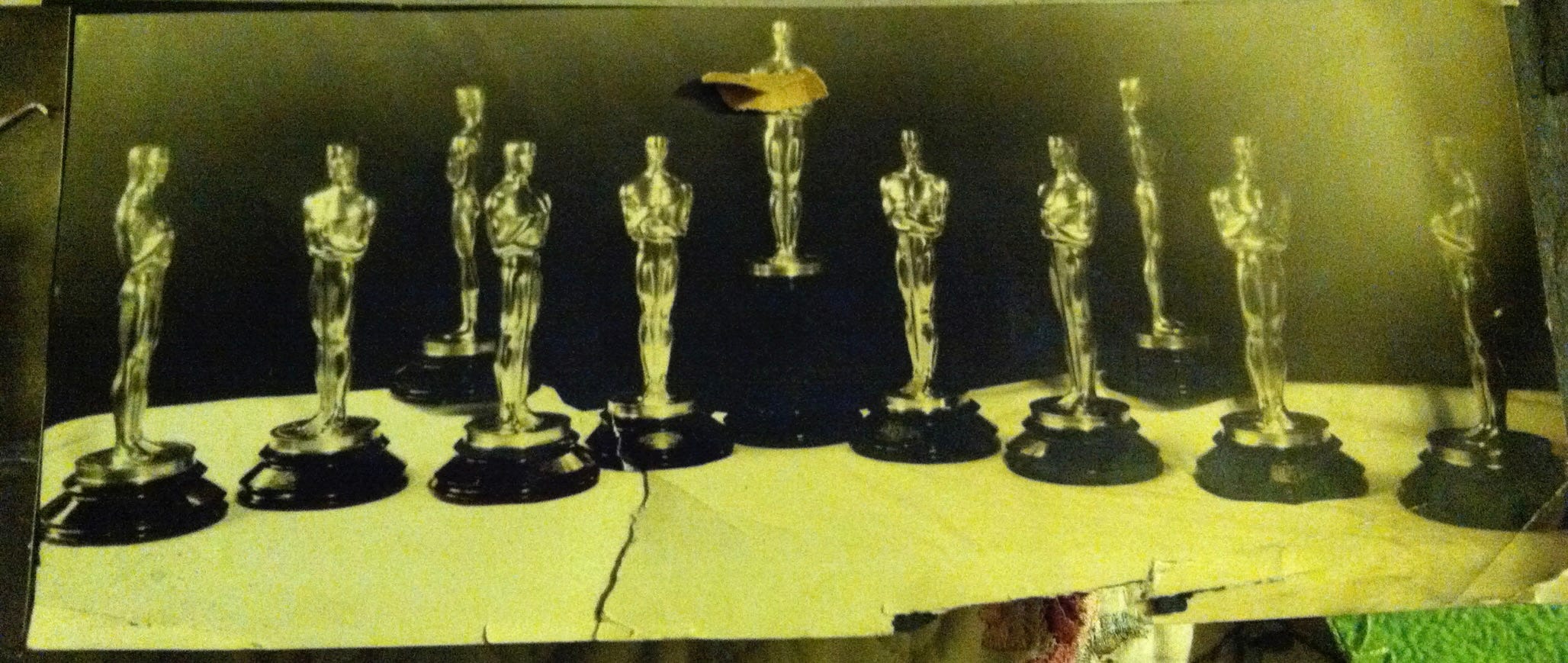 One question has to do with a photo of eleven presumably bronze statuettes that look eerily similar to the famed Oscars of the Academy Awards. Family lore is that Grandpa Brad had a hand in designing the first statuettes.